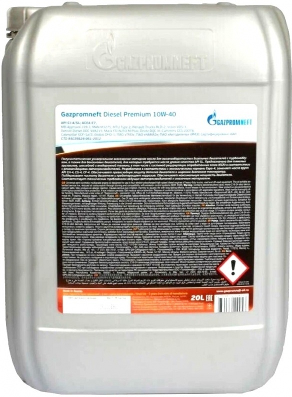 Gazpromneft Diesel Premium 10W-40 — высококачественное полусинтетическое моторное масло для современных дизельных двигателей в фасовке 20 литров (вес 17,64 кг).
