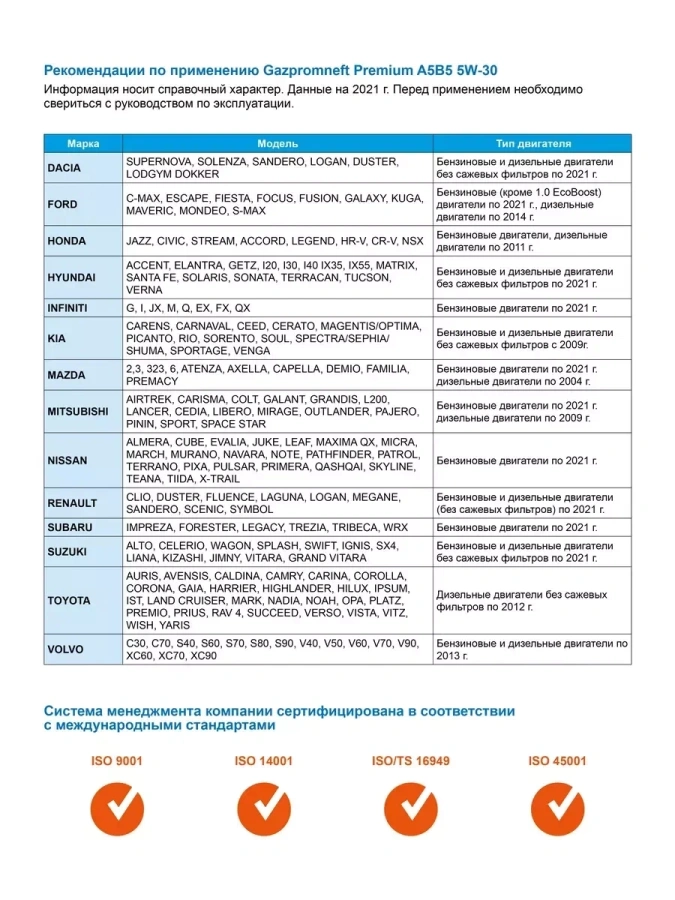 - ACEA: A5/B5