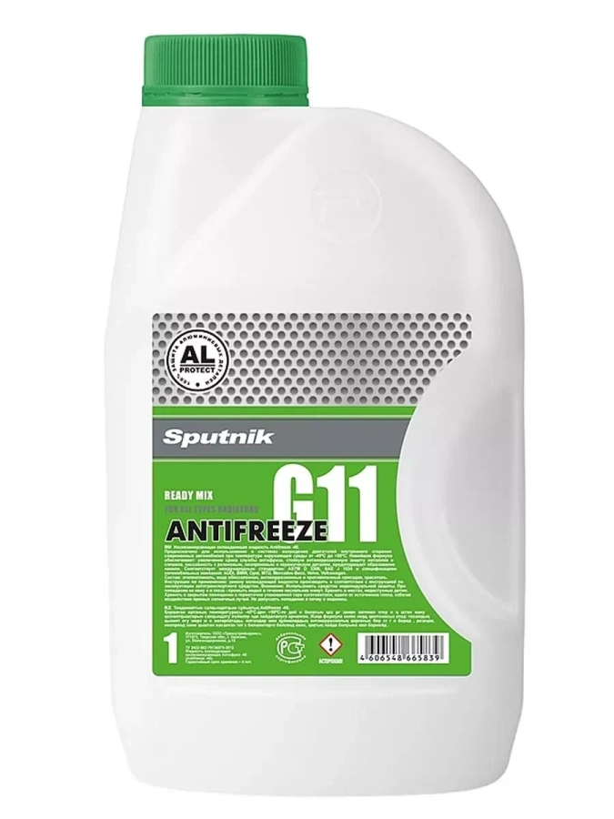 Антифриз SPUTNIK G11 1 кг (0,93 л), зелёный, готовый раствор (-37°C), класс G11