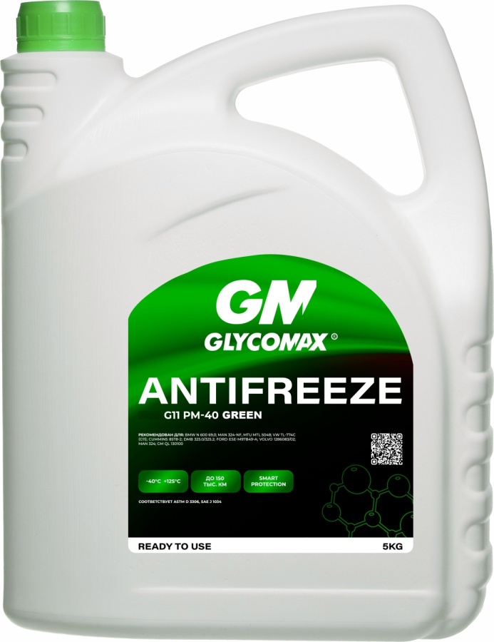 Антифриз GLYCOMAX Green G11 5 кг (4,6 л), зелёный, готовый раствор (-37°C), класс G11