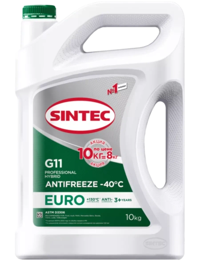 Антифриз Sintec EURO 10,8 кг (10 л), зелёный, готовый раствор (-37°C), класс G11