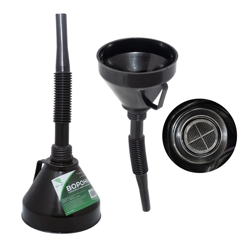 Лейка воронки — полипропилен, диаметр 16 см, высота 14,5 см, носик воронки — полиэтилен, длина 27,5 см, в комплекте с сеточкой. "