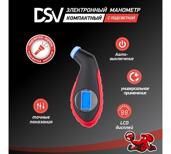 Корпус манометра обрезинен по краям, благодаря чему он не скользит в руках, а при падении защищен от механических повреждений.