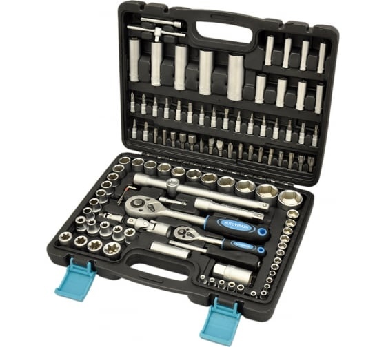 Набор инструментов AUTOVIRAZH AV-212108, 108 предметовСостоит из 108 предметов, имеет большое количество стандартных и удлиненных 6-гранных торцевых головок для 2 популярных приводов 1/4" и 1/2", головки Е-типа, а так же множество битов и головок со вставками с разными профилями. Прекрасно подходит для выполнения слесарносборочных и монтажных работ с различным крепежом. Инструменты изготовлены из хромованадиевой стали. Привод 1/4"; Трещотка 1/4" 24 зубцов; Головки 6 граней- 13 шт 4-4,5-5-5,5-6-7-8-9-10-11-12-13-14; Головки со вставкой TORX - 7 шт Т8-Т10-Т15-Т20-Т25-Т27-Т30; Удлинители 50 мм- 1шт, 7 5мм - 1 шт Головки удлиненные 6 граней -8 шт 6-7-8-9-10-11-12-13 мм; Отверточная рукоятка - 1 шт Вороток 115 мм - 1 шт Головки со вставкой HEX - 4 шт 3-4-5-6; Головки со вставкой SLOTTED-3шт 4-5.5-6.5 Головки со вставкой PHILLIPS-2 шт PH 1-2; Головки со вставкой POZI -2 шт: PZ 1-2; Карданный шарнир - 1 шт Головки Е-типа - 5шт: Е4-Е5-Е6-Е7-Е8; Ключ шестигранный Г-образный- 3 шт 1.5-2-2.5мм. Привод 1/2"; Трещотка 1/2" 24 зубцов -1 шт Головки 6 граней -17 шт 10-11-12-13-14-15-16-17-18-19-20-21-22-24-27-30-32; Удлинители 120 мм- 1шт, 250 мм - 1шт Биты TORX - 5шт Т40-Т45-Т50-Т55-Т60; Головки удлиненные 6 граней -5шт 14-15-17-19 мм; Биты шестигранные (HEX)-5шт: 7- 8-10-12-14; Биты шлицевые (SLOTTED) - 3шт 8-10-12; Биты PHILLIPS-2шт: PH 3-4; Биты POZI -2шт: PZ 3-4; Головки свечные 16 мм -1шт, 21 мм -1шт Карданный шарнир - 1шт Держатель бит 1/2" - 1 шт Адаптер для воротка 3/8" * 1/2" - 1шт Головки Е-типа - 8 шт. Е10-Е11-Е12-Е14-Е16-Е18-Е20-Е24.