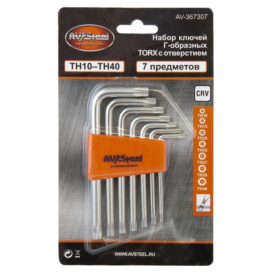 Набор ключей Г-образных TORX с отверстием TH10-TH40 "AV Steel" 7 предм. AV-367307