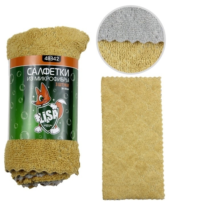 Салфетки из экстраплотной микрофибры "Li-Sa" в наборе (3 шт-30х30см) унив., плотность 300г/м2 48342