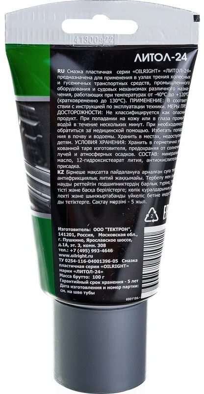 СМАЗКА ЛИТОЛ-24 ОIL RIGHT 100 в тубе