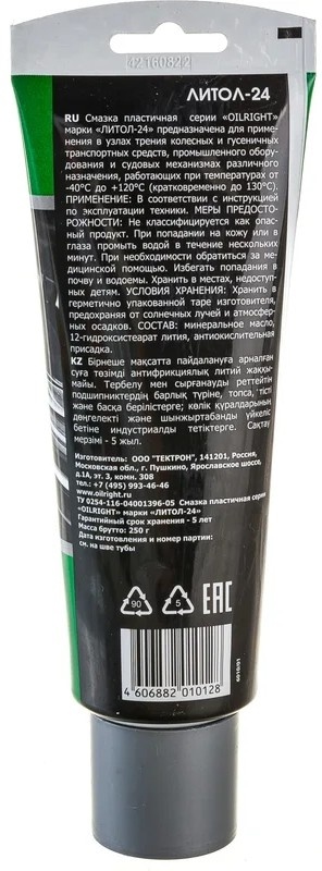 СМАЗКА ЛИТОЛ-24 ОIL RIGHT 250 в тубе