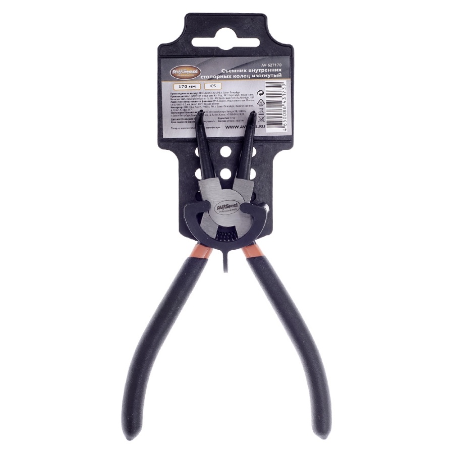 Съемник внутренних стопорных колец изогнутый 170мм AV Steel AV-627170 предназначен для снятия внешних стопорных колец диаметром 19-60мм с диаметром отверстий 1,8мм