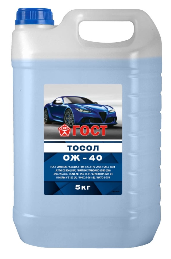 Тосол ГОСТ ОЖ-40 5 кг (4,6 л), синий, готовый раствор (-40°C), ГОСТ 28084-89