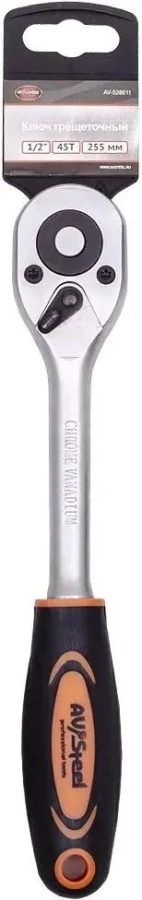 Трещотка 1/2 42 зуба 255 мм с резиновой прям. ручкой AV Stell AV-528611