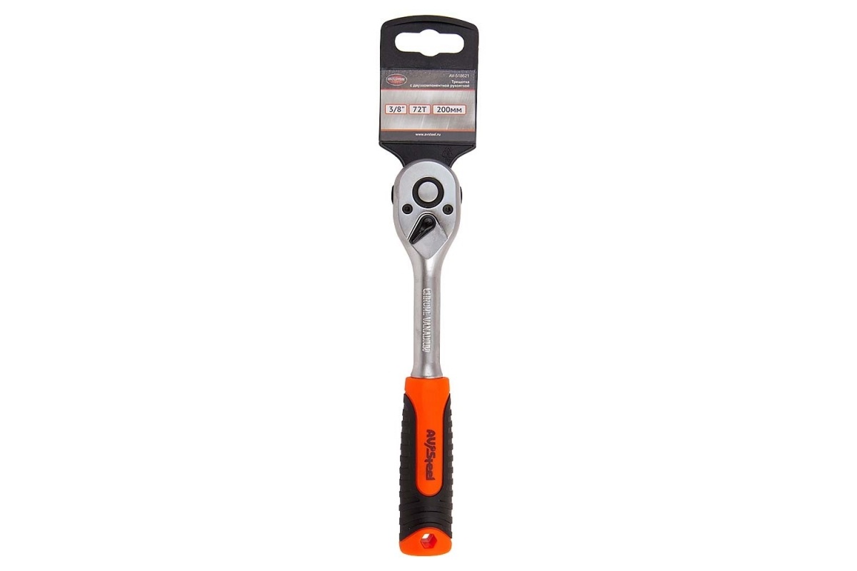 Трещотка 3/8" 72-зубца 200мм с двухкомпонентной рукояткой AV Steel AV-518621