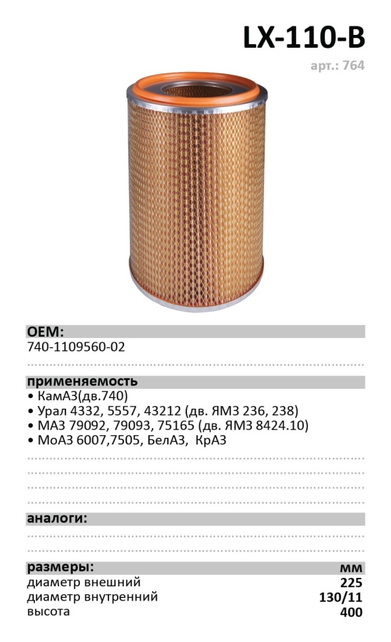 ФИЛЬТР ВОЗД. LUXE LX-110-B КАМАЗ 740
