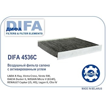 ФИЛЬТР САЛОНА ДИФА 4536C (угольный) LADA:Vesta Cross, Vesta SW, Vesta SW Cross,X-RAY (CU 22 011)