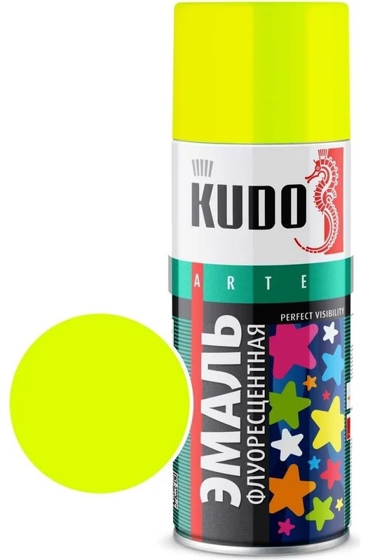 Эмаль флуоресцентная KUDO KU-1204 лимонно-жёлтая, 520 мл, акриловая матовая, артикул KU-1204