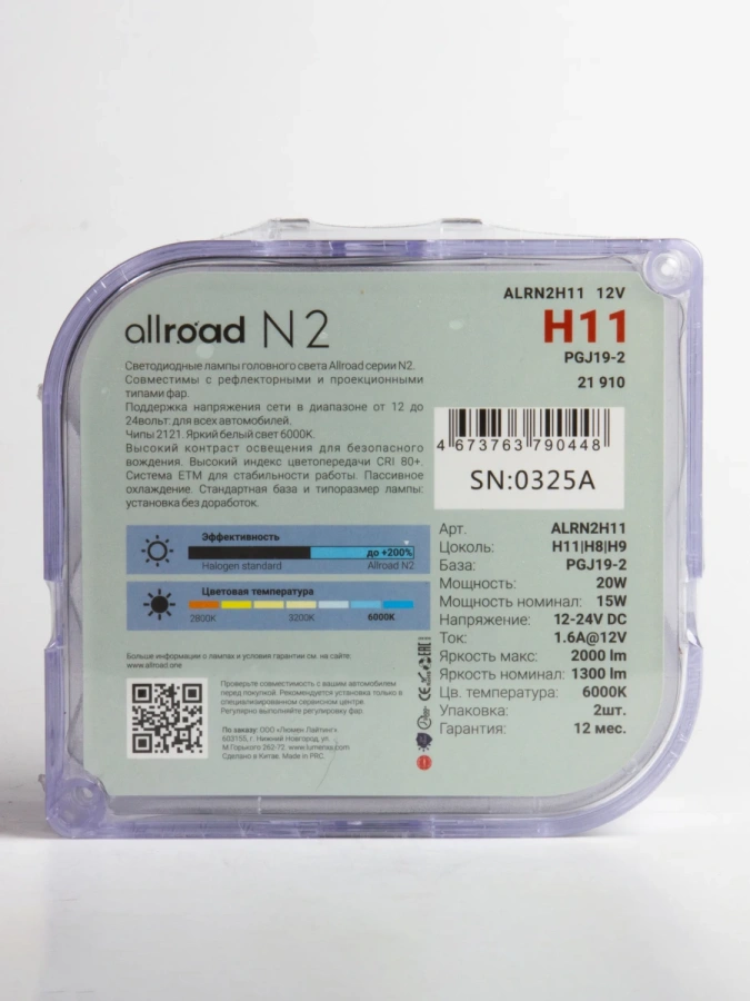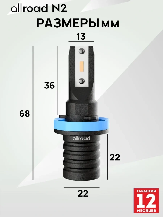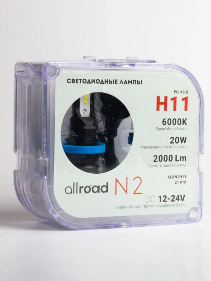 Лампа светодиодная Allroad H11 N2 (H8/H9/H11), 12–24 В, 30 Вт, 2000 лм, комплект 2 шт., арт. ALRN2H11